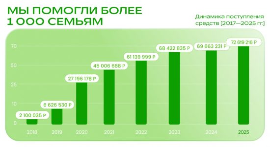 График отражает рост доверия к нашему фонду. Каждый год — это шаг к большему. Каждый рубль — это вклад в чью-то жизнь.